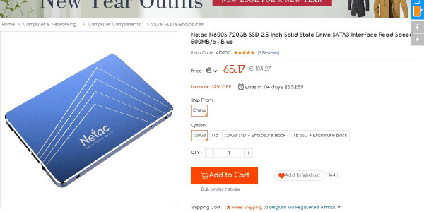 Recevez une réduction sur le Netac N600S 720GB SSD (-5$) ou en utilisant le code NETACSSD. Ce bon plan est valable jusqu'au 03/02.