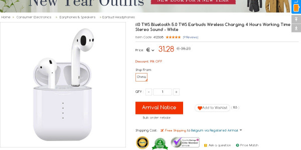 Recevez une réduction sur le i10 TWS Bluetooth 5.0 TWS Earbuds Wireless Charging (-7$) ou en utilisant le code MJCBVXWB. Ce bon plan est valable jusqu'au 03/02.
