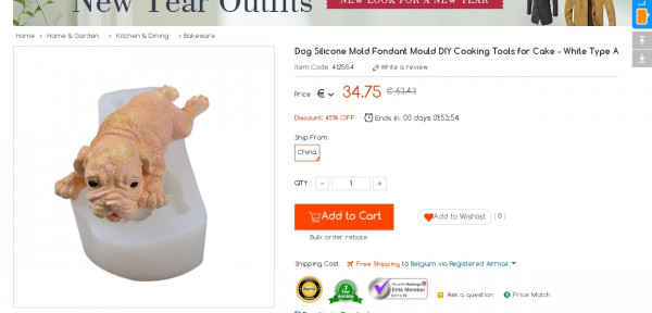 Recevez une réduction sur le Dog Silicone Mold Fondant Mould (-3$) ou en utilisant le code RFILVGTH. Ce bon plan est valable jusqu'au 04/02.