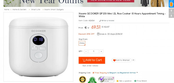 Recevez une réduction sur le Xiaomi QCOOKER QF1201 Mini 1.2L Rice Cooker (-5$) ou en utilisant le code PYAKTKSI. Ce bon plan est valable jusqu'au 06/02.
