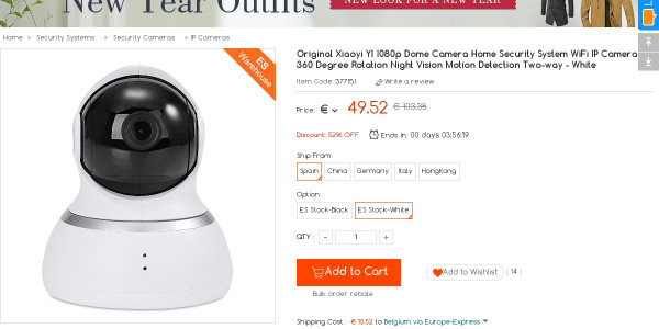 Recevez une réduction sur le [ES STOCK]Original Xiaoyi YI 1080p Dome Camera (-7$) ou en utilisant le code QQDGQVOL. Ce bon plan est valable jusqu'au 07/02.