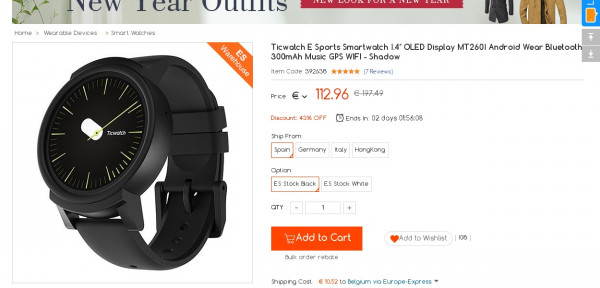 Recevez une réduction sur le [ES STOCK]Ticwatch E Sports Smartwatch (-10$) ou en utilisant le code TYPUQVRY. Ce bon plan est valable jusqu'au 07/02.