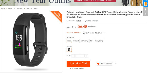 Recevez une réduction sur le [ES STOCK]Weloop Neo Smart Bracelet (-5$) ou en utilisant le code LGJOONYM. Ce bon plan est valable jusqu'au 07/02.