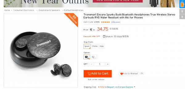 Recevez une réduction sur le [ES STOCK]Tronsmart Encore Spunky Buds Bluetooth Headphones (-5$) ou en utilisant le code ZWCNKGRK. Ce bon plan est valable jusqu'au 07/02.