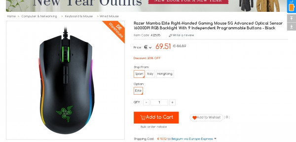 Recevez une réduction sur le Razer Mamba Elite Right-Handed Gaming Mouse 5G Advanced Optical Sensor 16000DPI (-10$) ou en utilisant le code BDKXCZLP. Ce bon plan est valable jusqu'au 24/01.