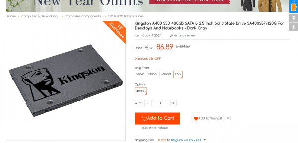 Recevez une réduction sur le Kingston A400 SSD 480GB SATA 3 2.5 Inch Solid State Drive (-10$) ou en utilisant le code GCFWACKX. Ce bon plan est valable jusqu'au 25/01.