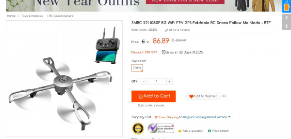 Recevez une réduction sur le SMRC S21 1080P 5G WiFi FPV GPS Foldable RC Drone (-7$) ou en utilisant le code IXGKKFIB. Ce bon plan est valable jusqu'au 25/01.