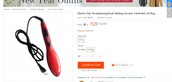 Recevez une réduction sur le Electric Hair Straightening Brush Heating Ceramic Comb Red (-1$) ou en utilisant le code LBWYAPHI. Ce bon plan est valable jusqu'au 25/01.