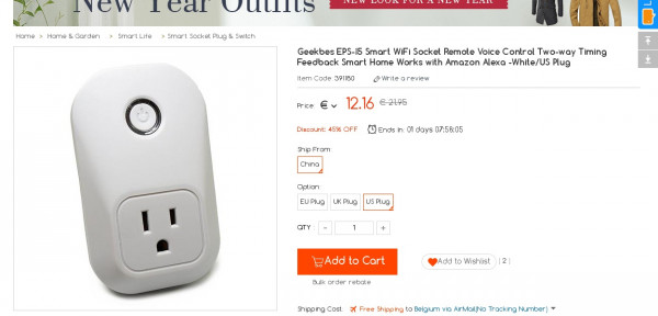 Recevez une réduction sur le Geekbes EPS-15 Smart WiFi Socket (-1$) ou en utilisant le code VWSTCTBO. Ce bon plan est valable jusqu'au 25/01.
