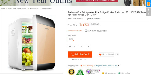 Recevez une réduction sur le Portable Car Refrigerator Mini Fridge Cooler & Warmer (-10$) ou en utilisant le code ZIBIUAFH. Ce bon plan est valable jusqu'au 11/02.