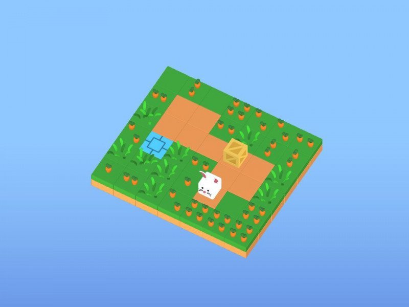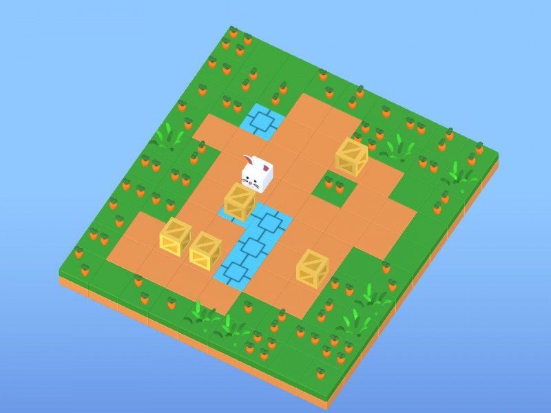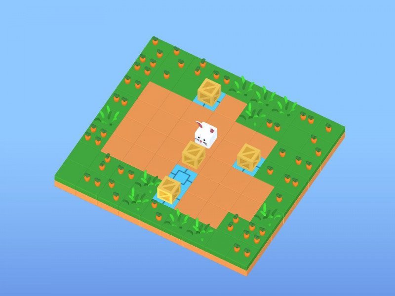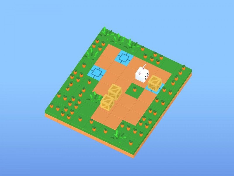 Bien trop souvent, nous nous sommes retrouvés à devoir simplement pousser la caisse sur la boîte désignée, sans avoir à réfléchir à un chemin ou à la caisse à déplacer en premier, ce qui, après un court laps de temps, a conduit à une perte immédiate d'intérêt pour le jeu. En dehors du mouvement, nous n'avons pas la possibilité de revenir en arrière dans les déplacements mais il est possible de réinitialiser le niveau. Si l'on se place du point de vue du joueur qui cherche à se divertir, ce titre n'est malheureusement pas intéressant, même pour les plus grands amateurs de puzzle games, justement parce qu'il n'y a pas ou peu de puzzle. Le discours change cependant si l'on détourne le titre vers un public plus jeune, voire très jeune, ou n'ayant quasiment aucune expérience dans le domaine. Ici, le gros lapin pourrait être en mesure de divertir et d'amener le joueur sur le terrain. Même sur le plan technique, le titre ne laisse rien présager, il est (trop) simple, comme tout le reste. La bande-son, inutile de le préciser, est simple et relaxante.