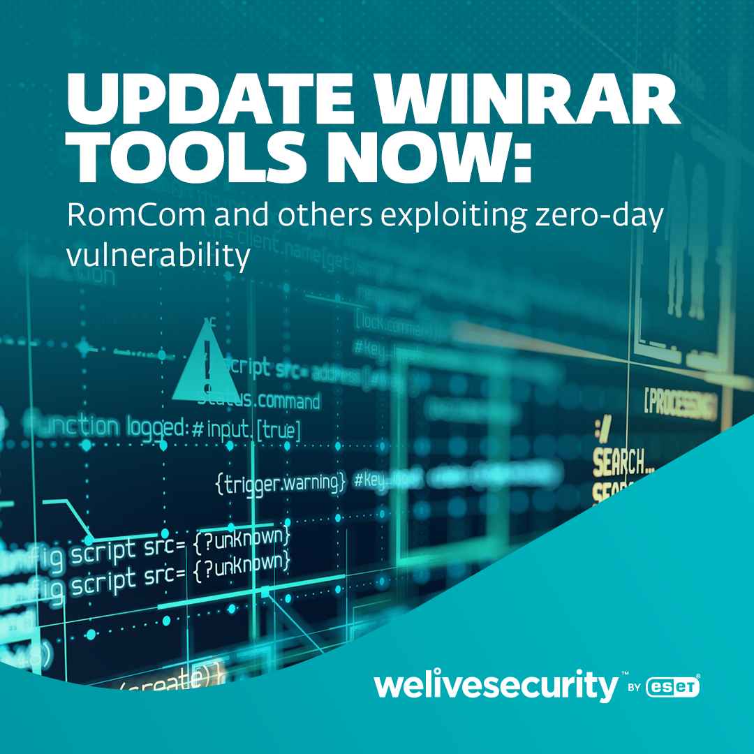 Bratislava, le 12 août 2025 — Les chercheurs d'ESET ont découvert, dans WinRAR, une vulnérabilité jusqu'alors inconnue, exploitée par le groupe RomCom lié à la Russie. Selon la télémétrie d'ESET, des archives malveillantes ont été utilisées dans des campagnes de spearphishing entre le 18 et le 21 juillet dernier, visant des entreprises du secteur de la finance, de l'industrie, de la défense et de la logistique en Europe et au Canada. Il s’agissait d’attaques de cyberespionnage. C'est la troisième fois que RomCom est surpris en exploitant une vulnérabilité zero-day significative.