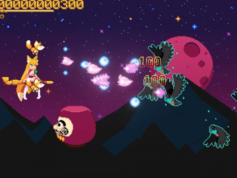 Développé par Super16bits, Twilight Parade: Moonlit Mononoke est un shoot'em up classique en 2D à défilement horizontal, conçu principalement pour les nouveaux joueurs. Comme son titre l'indique, Twilight Parade : Moonlit Mononoke n'a pas grand-chose à dire, bien au contraire. Et c'est vraiment dommage, car l'idée de base, bien que simple et banale, aurait pu être bien plus intéressante. En bref, les protagonistes, un groupe d'oni plantureuses et puissantes, n'ont pas été invitées à une sorte de méga-parade rassemblant une multitude de yokai. Plus précisément, il s'agit des célébrations du Hyakki Yagy? , ou « le défilé nocturne des cent yokai ». Il s'agit d'une tradition japonaise selon laquelle, chaque année, des centaines de y?kai envahissent les rues de la ville, exclusivement la nuit. Le folklore japonais a toujours exercé une fascination indéniable, et c'est l'une des raisons pour lesquelles nous nous attendions à davantage. Au lieu de cela, après une introduction écrite, nous sommes littéralement plongés dans l'action sans le moindre développement narratif. Il est également à noter qu'il n'y a même pas de conclusion… Après avoir terminé le cinquième et dernier niveau, le générique défile immédiatement, nous ramenant au menu d'ouverture, pour le moins décevant. Oui, Twilight Parade : Moonlit Mononoke ne compte que cinq niveaux , pour une durée de vie totale inférieure à une demi-heure. La raison ? Le jeu est d'une simplicité déconcertante : pas de véritable fin de partie et des « continuations » quasi infinies. À cela s'ajoutent quatre personnages seulement, chacun arborant une apparence légèrement suggestive, dont une oni plantureuse chevauchant une banane géante… Chaque oni est accompagné d'un petit familier servant de feu supplémentaire, mais, esthétiquement mis à part, ils se ressemblent tous, rendant les parties suivantes particulièrement superflues. Bref, Twilight Parade : Moonlit Mononoke est un shoot'em up 2D à défilement horizontal frénétique qui ne cherche pas à innover. C'est une expérience très rétro, presque arcade… à ceci près que le système de score est quasiment optionnel et constamment gâché par des continues infinis et des situations quasi impossibles.