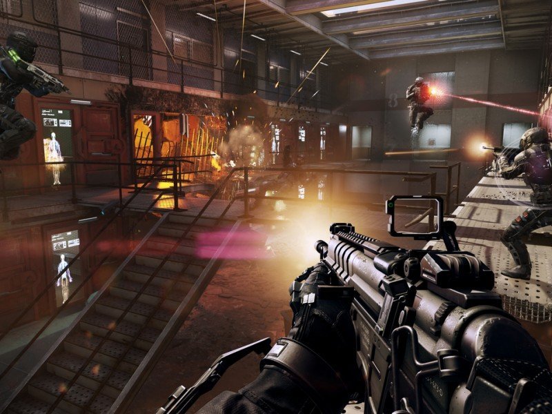 Sur le plan technique, Advanced Warfare s'en sort d'ailleurs beaucoup mieux que son prédécesseur. Sur Xbox One, le titre ne tourne pas toujours en 1080p, mais affiche une résolution dynamique pour conserver une animation fluide et constante en toutes circonstances (davantage que sur PS4). Les explosions, les immeubles qui s'écroulent, les phases en véhicules, rien de viendra perturber ce nouveau moteur 3D beaucoup plus convaincant que ne l'était l'épisode Ghosts. La modélisation des personnages bénéficient d'un soin particulier et renforce l'immersion. Les effets de lumières sont particulièrement soignés et le jeu nous fera voyager autour du globe, de Seattle à Bagdad en passant par un décor glacial, tout est plutôt séduisant, même si certains scripts subsistent toujours et que l'aliasing est bien visible. Les premières missions sont très linéaires, mais au fil des minutes, les niveaux deviennent de plus en plus vastes, et permettent davantage de fantaisies qu'à l'accoutumée. Les personnages sont très expressifs et l'ambiance nous plonge immédiatement dans l'enfer de la guerre. Signalons d'ailleurs que le jeu s'avère plus violent que son prédécesseur (d'où la classification PEGI 18+). En solo, Call of Duty assure une moyenne de huit heures de jeu, ce qui demeure assez convaincant. Les panoramas sont variés et l'exosquelette a considérablement modifiée l'approche, au profit d'une verticalité très surprenante pour un COD. L'EXO est une armure que portent la plupart des soldats sur le champ de bataille. Ils permettent de décupler les capacités du soldat qui peut sauter beaucoup plus haut, courir plus vite, afficher une force surhumaine ou encore déployer un camouflage pour devenir invisible. Ils existent deux sortes d'EXO, Assault et Spécialiste. Les deux offrent des capacités et aptitudes différentes, évitant ainsi de voir la monotonie s’installer.
