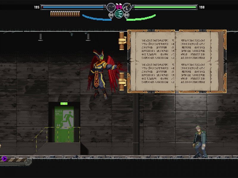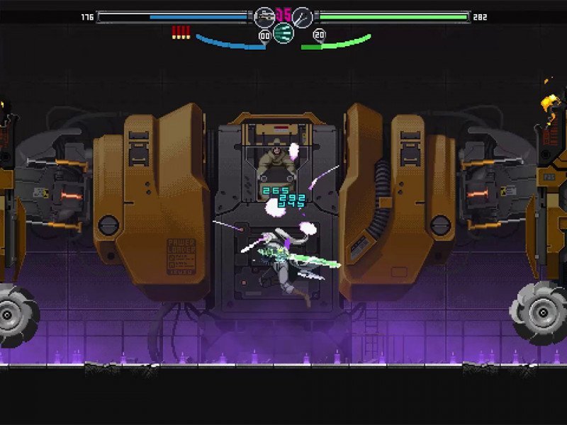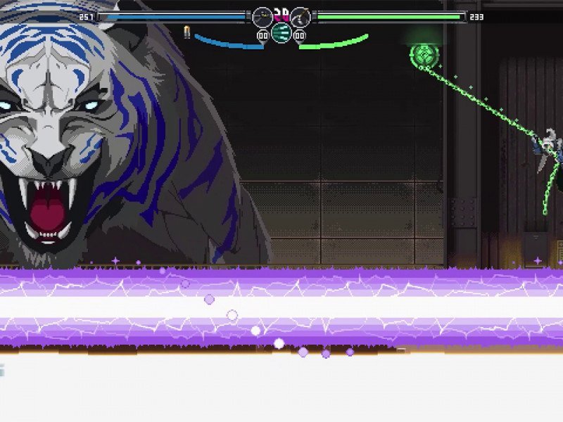La Team Ladybug connaît le pixel art et maîtrise l'animation qui produit des scènes vibrantes qui sont un délice visuel. À première vue, le personnage donne l'impression d'être un modèle 3D, mais à notre grande surprise, l'auteur a récemment partagé sur Internet le processus d'animation du personnage entièrement en pixel art 2D. La grande quantité de finition dans les mouvements, les particules, les effets secondaires, le contraste et l'éclairage est à apprécier. Peut-être que la seule chose qui va à l’encontre de cela est d’avoir un paramètre cyberpunk dans sa description. On y voit des contrastes de rouge électrique et de bleu turquoise, certaines technologies et laboratoires. Mais il n’existe pas une grande majorité d’éléments permettant d’identifier cette particularité cyberpunk. Vous pouvez certainement voir le travail dans les paramètres, les personnages et les menus du jeu, et ce n'est qu'en y prêtant une attention particulière que nous pouvons voir des éléments qui sont répétés ou utilisés sans discernement, cependant, la qualité que l'auteur imprime tout au long du titre s'apprécie vraiment visuellement. Blade Chimera nous accueille avec une chanson électronique qui déborde d'énergie. Plus tard dans la visite de la ville, nous serons accompagnés d'une chanson aux accents funk et jazz avec des synthétiseurs assez agréables. Et il y en a un autre lorsque l'on atteint un passage souterrain qui transmet mystère et intensité.
