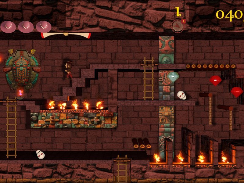 En 1983, un jeu sorti sur presque tous les ordinateurs et consoles 8 bits disponibles à l'époque a rapidement été salué par de nombreux éloges. Il s'agissait de Montezuma's Revenge de Rob Jaeger . Le jeu mélangeait des éléments d' exploration de temples à la Indiana Jones , des sauts de plateforme bien programmés et des animations de sprites amusantes dans une concoction à laquelle le public de l'époque ne pouvait tout simplement pas résister. Nous avançons maintenant de près de 40 ans dans le futur où, grâce au développeur Eastasiasoft, le jeu est disponible dans un remaster ... enfin pas vraiment. Dans Montezuma's Revenge, vous incarnez un explorateur audacieux nommé Pedro (anciennement connu sous le nom de Panama Joe à l'époque où le jeu était publié par Parker Brothers ) dans sa quête de pierres précieuses à l'intérieur du dangereux tombeau du roi Montezuma , avec pour objectif ultime la légendaire salle aux trésors qui se trouverait sous le milieu du rez-de-chaussée de la pyramide. Afin de mettre la main sur les richesses aztèques qu'il désire tant, Pedro devra explorer minutieusement les 99 salles de la pyramide (100 si l'on compte l'entrée du sommet) pour trouver les clés et les torches dont il aura besoin pour avancer. De plus, il devra éviter d'une manière ou d'une autre un large éventail de pièges et d'ennemis (y compris des crânes géants qui roulent d'avant en arrière sur le sol) et affronter avec succès son ennemi le plus redouté de tous : la gravité.