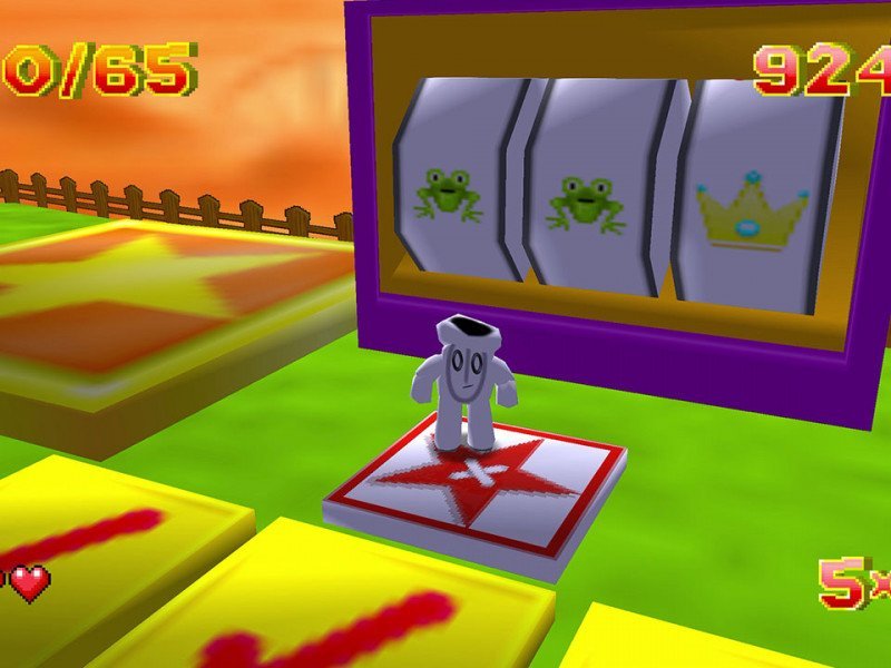 Le gameplay est entièrement basé sur la physique du roulement de la balle : vous pouvez la frapper au sol pour la faire rebondir (servant en quelque sorte de saut), vous pouvez la ramasser et la lancer au loin, et même la transformer en d'autres types de balles, comme une boule de bowling, qui est plus lourde et peut être utilisée pour détruire des murs ou d'autres objets ; ou une boule en métal, qui est plus rapide mais qui a un poids supplémentaire. Vous pouvez également laisser tomber la balle et contrôler Glover vous-même, ce qui le fait se déplacer davantage comme un personnage de plateforme 3D traditionnel, où le joueur peut sauter, frapper le sol qui fonctionne comme le Ground Pound de Super Mario 64, pousser les murs, etc. Le jeu utilise cette dynamique de contrôle de Glover avec ou sans ballon pour créer des défis et des énigmes très intéressants . Parfois, vous devrez déposer la balle dans un coin pour effectuer une action avec Glover pour dégager le chemin, et ce n'est qu'alors que vous pourrez vraiment avancer. C'est assez simple, les choses ne deviennent jamais trop complexes, mais c'est toujours assez amusant et fascinant ! Manipuler Glover avec le ballon commence un peu maladroitement et difficilement, mais à mesure que vous vous habituez aux commandes et que vous gagnez en confiance, la partie plateforme devient beaucoup plus agréable. C'est un jeu qui demande beaucoup de patience pour apprendre toutes les nuances du mouvement, et au final, ça vaut le coup juste pour le plaisir. Un point négatif sont les boss, qui ont tendance à être très déséquilibrés : soit ils sont trop faciles et meurent en quelques secondes, soit ils sont trop difficiles et obtus à vaincre. Nous nous sommes retrouvés assez perdu dans certains combats, celui de Frankenstein étant probablement l'une des pires batailles auxquelles nous avons été confronté dans un jeu de plateforme 3D.