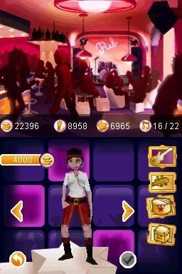 Développé par Artefact Studios (Moto Racer DS), Famous : En Route vers la Gloire vous met dans la peau d'une apprentie rock star. Avant de toucher les étoiles, il vous faudra donc créer un avatar, choisir le nom de votre groupe, puis accéder aux premiers exercices disponibles. Ainsi on alternera cours de chant, de danse, de guitare et de composition dans différents jeux de rythme. Au fur et à mesure, on gagnera des points de talent, tandis que pour augmenter sa popularité, on n'hésitera pas à fréquenter le magasins de vêtements afin de se forger un nouveau look, à acquérir de nouveaux instruments (guitares mais aussi basses ou batteries), à fréquenter le café pour recruter les meilleurs musiciens du moment, puis enfin à se lancer à l'assaut des concerts. Tous les mini-jeux présents sur la cartouche utilisent l'écran tactile, et sont basés sur le rythme. Rien de véritablement compliqué à première vue, si ce n'est qu'il faudra avoir de solides réflexes lorsque la difficulté augmentera. Arrivé dans un concert, vous devrez là encore participer à plusieurs épreuves, non seulement musicales, mais aussi de fan service. Le public vous enverra en effet des récompenses ou des malus. Attention donc à ce que vous réceptionnerez ! Parfois il faudra également lancer quelques cadeaux au public, ou bien applaudir avec eux, avant de passer à l'épreuve de l'interview avec les journalistes. Pas de surprise de ce côté là : plusieurs micros sont affichés, et il faudra suivre l'ordre dans lequel chaque média intervient, en pointant les micros à l'écran.