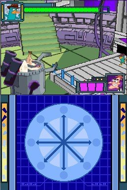 L'objectif est de trouver des pièces et de construire un véhicule. Il est possible de passer d'un personnage à l'autre à tout moment, Phineas étant envoyé dans les niveaux pour récupérer les éléments manquants, tandis que Ferb assurera le rôle de mécanicien. Mais il faudra également surveiller les agissements de Candice, sur l'écran supérieur. Une fois le mini-jeu accompli, on passera à la mission suivante. Les courses présentes sont assez basiques mais reste assez honnêtes, surtout lorsque vous disposerez enfin d'une véritable voiture de course. Graphiquement parlant, le jeu de Disney s'en sort relativement bien, avec un trait extrêmement proche du dessin animé, et une palette de couleurs lumineuses. L'animation se montre très fluide, et chaque niveau a son style particulier. On notera toutefois une sorte de flou par moment dans les décors, mais rien de bien dérangeant. Quant à la musique, elle est toujours très bien réalisée. Guidé par une jouabilité simple d'accès, et une durée de vie honnête, ce titre devrait donc plaire aux enfants, même si le jeu est resté intégralement en anglais.