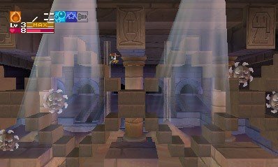 Heureusement, le personnage dispose d'un pistolet, le Polar Star, qui pourra être amélioré durant toute la partie. Sachez cependant que Cave Story 3D bénéficie d'un degré de difficulté très important. En outre, il faudra souvent faire des allers-retours pour ouvrir un passage ou récupérer un objet. Une constante dans les jeux de ce genre, il est vrai. Petite difficulté supplémentaire cependant, le jeu est resté intégralement en anglais, ce qui posera peut être quelques problèmes aux plus jeunes.