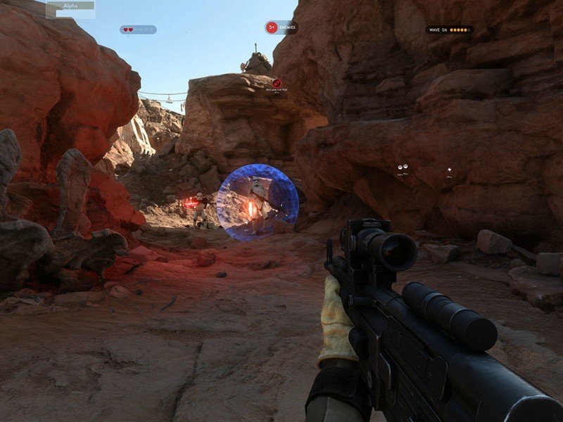 Pour ce qui est du concept à proprement parler, il s'agit d'un jeu de tir à la première personne assez classique avec quelques objectifs à accomplir. Il est possible de basculer en vue troisième personne, hélas les animations des personnages deviennent rigides à souhait. Quant aux champs de batailles proposés, nous retrouvons, les planètes Hoth, Endor, Tatooïne et Sullust. Bien sur, certaines séquences phares des films seront de la partie. L'intelligence artificielle s'avère assez limitée et les adversaires vous cibleront encore et toujours. Autant dire qu'on se sent bien seul, et lorsqu'on découvre le respawn infini des ennemis dans certains passages, nous ne sommes pas loin de toucher le pompon. Il faudra environ six heures pour terminer l'aventure solo, et on a davantage l'impression d'avancer dans un tutoriel pour le multijoueur, que de vivre une campagne à grand spectacle.