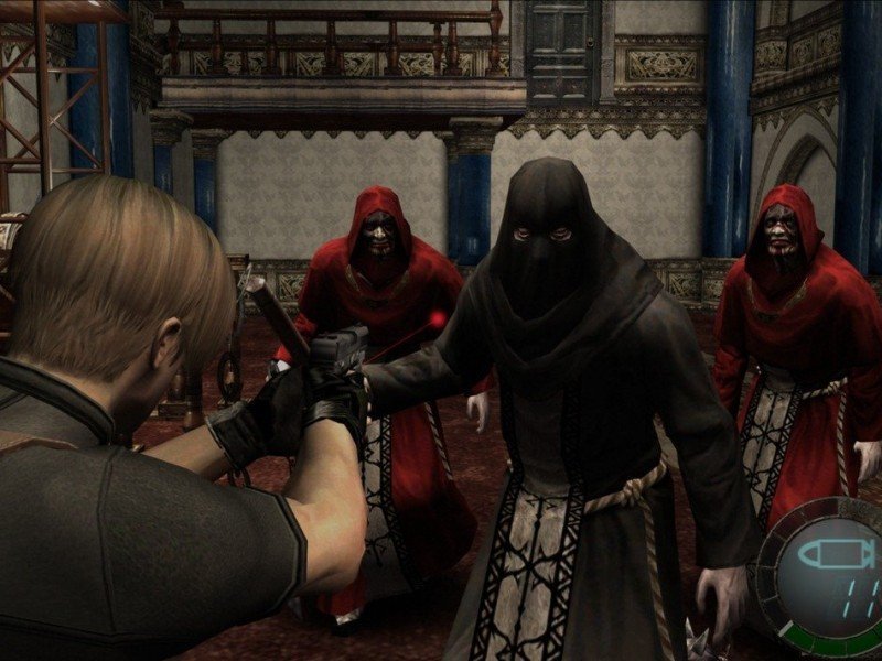 Quand un ennemi est sonné, vous pouvez donner un coup de pied en appuyant sur X. L'action apparaîtra à l'écran. Il est également plus facile de se dégager en cas de contact avec le méchant. Des écrans fixes vous apprendront au fil de la partie les nouvelles possibilités. Attention aux personnes ayant une tronçonneuse ! Ils vous touchent et c'est la décapitation assurée. Résistant en plus ces sales bêtes et vous n'êtes pas à l'abri d'autres surprises surprises. Plus tard quand vous aurez trouver Ashley, il faudra repousser la menace, et la protéger. Heureusement, il sera possible de la cacher dans certaines malles.