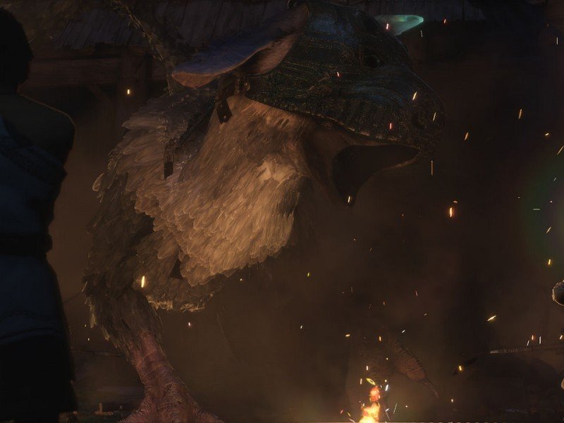 Des gardes-golem tenteront à plusieurs reprises d'entraver votre progression, imposant de trouver au plus vite une façon de faire entrer Trico dans la pièce traversée. Des affrontements qui auront des conséquences sur l'animal, qu'il ne faudra pas hésiter à caresser pour le calmer. Le gameplay demeure simple d'accès, car il est possible d'indiquer des actions à Trico (sauter, avancer, se calmer, s'assoir). Il sera nécessaire d'activer des mécanismes pour continuer sa route, sachant que Trico est étrangement effrayé par les vitraux. Rapidement, vous récupérerez un bouclier-miroir qui n'a pas du tout le même effet que dans la série The Legend of Zelda. Ici, il sert à activer une décharge énergétique via la queue de l'animal. L'enfant est souvent hésitant dans ses déplacements, un sentiment finalement assez normal. Ce qui l'est beaucoup moins, c'est la gestion de la catastrophe qui nous replonge des années en arrière en matière de bugs. Heureusement que l'action n'est jamais très intense.