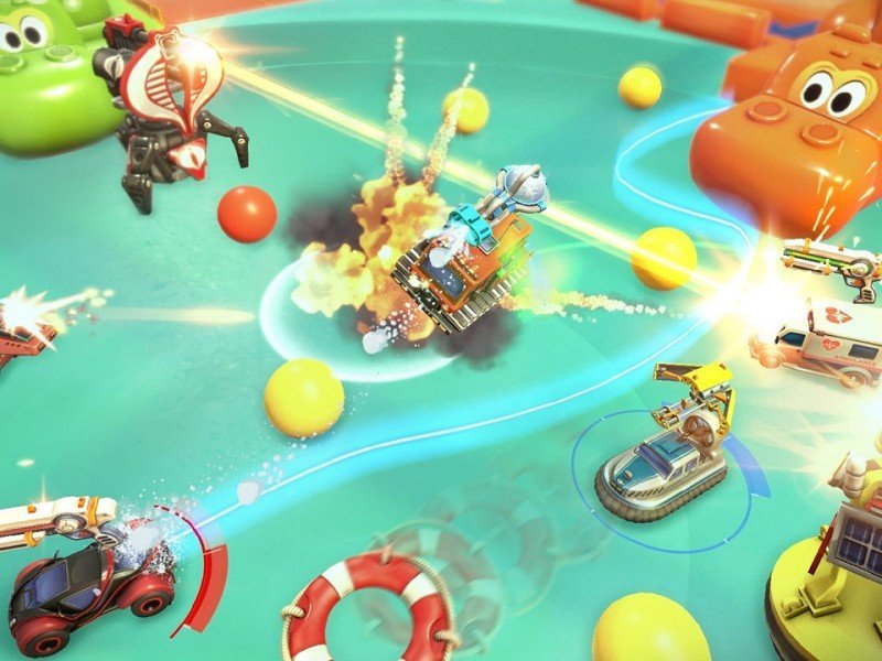 Développé par Codemasters, Micro Machines connu un grand succès sur consoles dans les années 1990, avant de disparaître pendant plus d'une décennie après l'épisode V4. Ce nouvel opus, désormais propulsé par le moteur Unity, tente d'apporter de la nouveauté dans le gameplay. Cela se ressent en particulier dans la prise en main beaucoup plus souple qu'à l'époque (notamment le changement de direction) et par une physique qui évolue en fonction de la catégorie du véhicule utilisée (voiture, tank, camion, etc). Premier bémol à noter, l'absence de mode carrière s'avère fortement préjudiciable pour les joueurs solo, d'autant plus que tous les éléments sont débloqués d'emblée. En multijoueurs, nous retrouvons le classique "Élimination" en local, mode au sein duquel la caméra se focalise sur le leader. Si un concurrent sort du cadre, il est instantanément éliminé. Lorsque l'on sait que des bonus peuvent être ramassés sur la piste (marteau, NERF ou grenade), l'action tourne rapidement au pugilat. Autre mode proposé, la "Bataille" fait évoluer les concurrents au sein d'une arène, là encore les voitures disposent d'arme mais liées au véhicule choisi. Une option de jeu pas vraiment motivante sur la durée, et un mode course classique aurait été plus appréciable, mais il ne s'avère accessible qu'en solo.