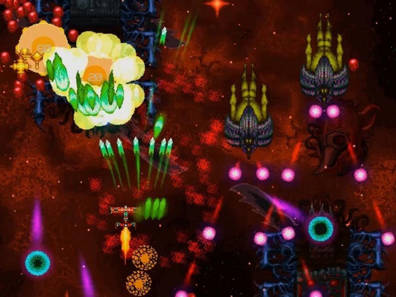 Le jeu se déroule comme n'importe quel autre jeu de tir à défilement, avec une course verticale ascendante et des bordures de chaque côté de l'aire de jeu. Ces bordures servent à afficher des informations clés telles que le score total, le nombre de morts, les combos et le nombre d'attaques spéciales de Valkyrie à utiliser. Le jeu offre un rythme stimulant et rapide, pour une expérience globalement amusante. Les commandes fonctionnent bien, avec une configuration simple permettant des temps de réaction ultra-rapides pour survivre à chaque vague d'ennemis. Le jeu peut parfois être impitoyable, alors restez concentré. 1917 propose également de nombreux contenus à collectionner et à débloquer en jouant, comme des améliorations d'armes, des combos de score et les indispensables orbes de bouclier. Ces éléments essentiels sont essentiels pour terminer un niveau, car le déluge de tirs ennemis était parfois imparable. Au fil de votre progression dans les dix niveaux de l'histoire, vous pourrez également débloquer de nouveaux avions améliorés, chacun doté de capacités pratiques. 1917 – The Alien Invasion DX possède des graphismes dignes de ceux de la Super Nintendo, vous offrant ainsi un jeu de tir pixelisé, explosif et gore. Vous remarquerez que, malgré son aspect vieillot, le jeu propose un nombre suffisant d'ennemis différents, des effets spéciaux soignés et, de temps en temps, des scènes sanglantes. Globalement, ce jeu aurait probablement fait exploser votre Super Nintendo avec tout ce qui se passe en permanence, mais ce look rétro lui va comme un gant. Nous pensons que si les graphismes avaient été modernisés, le jeu aurait perdu de son intérêt, surtout compte tenu du fait qu'il se déroule dans une autre époque de 1917 que celle que nous connaissons aujourd'hui. Le jeu propose une bande-son plutôt entraînante, proche des thèmes d'un film de guerre, quoique légèrement modifiée. Vous pourrez profiter d'une musique différente à chaque niveau, tout en profitant des bruits d'explosions, de vos tirs de canon incessants, de ceux de vos ennemis et d'un annonceur démoniaque qui prononce parfois quelques mots. Ce dernier est un véritable générateur d'ambiance, et nous regrettons qu'il ne soit pas utilisé plus souvent.
