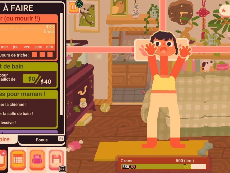 Consume Me se distingue par son mélange novateur de narration et de mini-jeux interconnectés, qui simulent la gestion quotidienne de Jenny de manière très concrète et captivante. Au cœur de l'expérience de jeu se trouve l'équilibre délicat entre l'alimentation, modélisée comme un puzzle de type Tetris où il faut assembler les aliments sans excès, et la gestion de l'énergie, de l'humeur et des relations de Jenny. Cette approche concrète de l'alimentation et de l'image corporelle rend le jeu à la fois éducatif et poignant, mais sa courbe de difficulté peut s'avérer ardue pour certains joueurs. La gestion du temps rend le jeu encore plus exigeant : chaque journée est divisée en plages horaires qu'il faut répartir judicieusement entre différentes activités comme les études, le sport, les tâches ménagères et les interactions sociales. Ce système de ressources limitées accentue la pression quotidienne que subit Jenny, la forçant à faire des choix stratégiques rapidement, au risque de perdre la partie. Bien qu'elle puisse revenir en arrière ou rejouer des chapitres avec des bonus, la tension reste palpable, car chaque décision a un impact direct sur l'état émotionnel et physique de l'héroïne. La variété des mini-jeux va des casse-têtes culinaires aux simples exercices de motricité, en passant par des tâches comme promener le chien, tous accompagnés de retours visuels et sonores pertinents qui encouragent le joueur à progresser. Malgré la répétitivité de certaines activités, la diversité des approches et le système de récompenses, avec ses tenues spéciales qui améliorent certaines activités, maintiennent l'intérêt du joueur tout au long de la partie. La courbe d'apprentissage est bien dosée, mais le jeu ne fait pas de compromis : il faut de la patience et de la persévérance pour maîtriser toutes ses mécaniques.