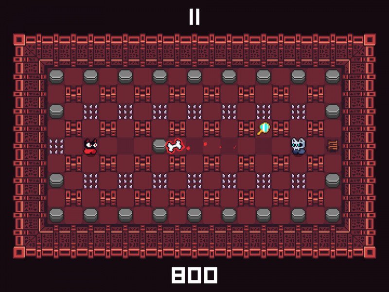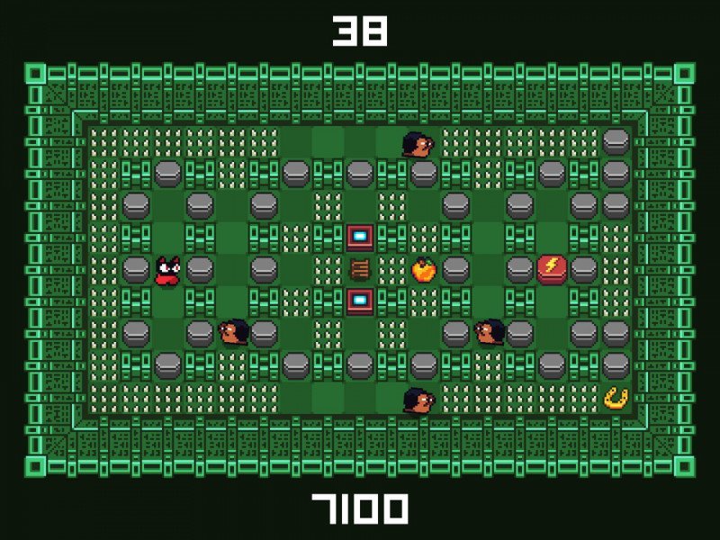 La difficulté du jeu augmente évidemment avec le nombre d'ennemis à l'écran et la réduction de notre marge de manœuvre, mais nous avouons avoir rarement rencontré de difficultés. Oui, si vous mourez, vous recommencez, mais l'ennui est davantage dû aux mécaniques de jeu qu'à la difficulté. On y contrôle un petit chaton noir qui évolue dans des environnements composés de grilles remplies de murs indestructibles et d'autres obstacles facilement identifiables, destructibles à la bombe. Le placement des bombes est identique à celui de Bomberman : on pose la dynamite avec un bouton et on s'enfuit en essayant d'éviter l'autodéflagration . Quelques secondes plus tard, la bombe explose, détruisant murs et ennemis. Le jeu propose une bombe relativement facile à manier et infligeant des dégâts en un point précis à courte portée, ce qui permet d'éviter assez facilement de se faire exploser. Cependant, il est important de noter que les ennemis peuvent marcher sur les bombes ; contrairement à la licence Konami, il est donc impossible de les coincer contre un mur ou autre. En résumé, le jeu se résume à cela : il a perdu l'originalité de Bomberman et a été dépouillé de tout artifice pour devenir un jeu de réflexion où il faut choisir les chemins à emprunter afin d'éviter un maximum d'obstacles. Pour pimenter un peu les choses, on peut récupérer quelques objets optionnels , mais ceux-ci n'apportent rien au jeu, se limitant à un petit bonus destiné aux joueurs les plus assidus . Malheureusement, comme mentionné précédemment, Bomb Kitten manque de mordant et d'originalité, et le recyclage excessif du gameplay et des éléments esthétiques, combiné à un gameplay principal assez lent et répétitif, ne donne pas envie de s'y accrocher. Par ailleurs, Bomb Kitten peine à se démarquer graphiquement , se contentant du strict minimum avec des animations médiocres et une esthétique fade et sans identité. Son design épuré évoque immédiatement « Bomberman », mais manque cruellement de créativité, et même l'effet nostalgique initial s'estompe rapidement face à un gameplay trop simplifié et peu vivant. La différence de couleur entre les biomes est appréciable, mais insuffisante pour un titre qui a du mal à trouver sa place. Il en va de même pour la bande-son , assez répétitive et sans inspiration. Enfin, le jeu est dépourvu de langue française, mais il n'y a pratiquement rien à lire.