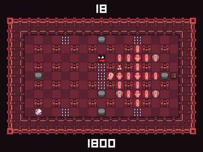 Développé par NipoBox, Bomb Kitten est un jeu de puzzle 2D en vue de dessus qui rend hommage à Bomberman, tout en tentant de le réinventer. Reprenant les mêmes mécaniques, il propose une série d'énigmes à résoudre. Tout comme pour Kotenok, la première impression que donne Bomb Kitten, le dernier opus de NipoBox et Eastasiasoft, est amère. La raison ? La jaquette, inexplicablement déconnectée du jeu et manifestement créée par intelligence artificielle, dont certains aspects sont flagrants. De plus, et toujours par rapport à Kotenok, ce choix stylistique est incohérent et inapproprié, produisant une imagerie qui ne correspond pas à l'esprit du jeu. La raison est simple : Bomb Kitten est un jeu en pixel art très rudimentaire , rappelant notamment Bomberman. La jaquette le confirme sans équivoque. De plus, le protagoniste est décrit comme portant une cape rouge, visible dans le jeu et dans sa description, alors que la jaquette présente un chat sans cape, vêtu d'une combinaison rouge façon Super Mario. Mais abstraction faite de la jaquette, même du point de vue narratif, on se retrouve avec une œuvre qui n'a rien à dire, tout simplement parce qu'elle ne veut rien dire. C'est un titre qui se concentre uniquement sur la résolution d'énigmes spécifiques à un seul thème, qui, précisément, reprennent et simplifient la formule éprouvée de Bomberman . On se retrouve donc face à une suite linéaire de 50 niveaux , tous très rapides et sans intérêt, pour une durée totale très courte. Le protagoniste ne prononce pas un mot et son personnage reste assez anonyme. Même les ennemis sont peu nombreux et monotones, changeant au gré des biomes. Chaque biome propose dix défis. On affronte aussi bien des escargots sautillant d'un bout à l'autre que d'étranges petits monstres nous lançant des objets mortels. C'est tout. Hormis un vague clin d'œil à Bomberman , accompagné d'une bonne dose de nostalgie, Bomb Kitten n'offre rien d'autre en termes d'histoire ou de scénario. Autrement dit, nous devrons relever cinquante défis où il nous faudra partir du point A et atteindre le point B. C'est tout.
