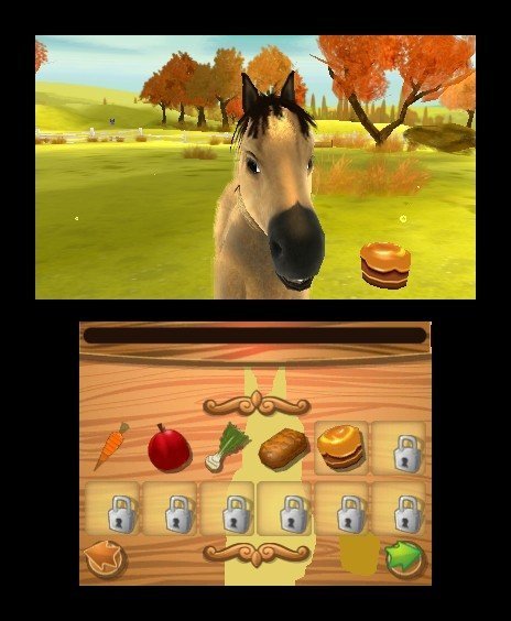 De son côté, Mon Haras 3D : Tous en Selle (2012) vous demande de prendre soin des chevaux (vingt-six races au total) à travers une campagne plus ou moins scénarisée de trente sept quêtes, débouchant sur onze mini-jeux. Ainsi dans l'étable, il faudra tout d'abord créer son cheval, dans la box, il sera nécessaire de le nourrir, l'abreuver et le nettoyer. Une fois dans le pré, vous pourrez vous amuser avec lui, mais également lui apprendre des figures, enfin dans le stade, il sera requis de lui apprendre à sauter les obstacles et enfin de le chevaucher lors de longs parcours, ou sur du tir à la cible. Le titre est entièrement jouable au stylet et se veut simple à l'utilisation, à l'exception peut être de certaines épreuves obligeant à utiliser le gyroscope. Sur le plan technique, le résultat est moins percutant. Le jeu propose des décors simples, et un rendu 3D stéréoscopique manque singulièrement de pertinence. La modélisation du cheval manque également de précision, et rappelle davantage un titre DS monté en résolution que le personnage d'Epona de Zelda Ocarina of Time 3D. Assez long à terminer, une dizaine d'heures environ, Mon Haras 3D est également compatible Street Pass pour débloquer des suppléments dans le jeu, et participer à des concours. La réalité augmentée répond une fois encore présente, et en utilisant les cartes livrées avec la console 3DS, il est possible de voir apparaître un cheval dans un environnement réel. Quant à la bande son, elle s'avère plutôt sympathique.