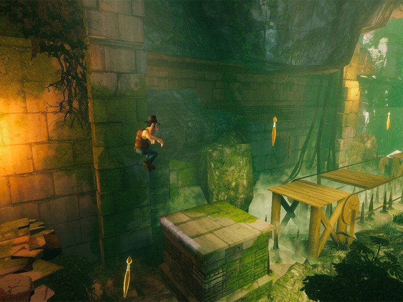 En parlant d'eau, Tad peut également nager avec une grande quantité de bulles d'air qui diminuent considérablement au fur et à mesure que vous vous immergez. Conscients que ce qui a été listé jusqu'à présent n'a rien de révolutionnaire, les développeurs ont jugé bon de varier l'expérience en incluant d'autres personnages. C'est ainsi que de temps à autre, de manière tout à fait obligatoire et donc établie par le jeu, vous vous retrouverez à endosser le rôle d'autres personnages avec de légères variations intéressantes, voire révolutionnaires. Trivialement, la fiancée de Tad est dotée d'un double saut qui facilite certains passages malgré un degré d'imprécision assez élevé (sans parler du manque de naturel de certains sauts, mais vu le ton de l'œuvre, ce n'est pas grave). En parlant d'imprécision, nous en arrivons au point sensible de Tad l'explorateur perdu : le saut. La prise en main du jeu n'est pas immédiate car on a toujours l'impression de patiner, comme si Tad faisait un pas de plus. Et un pas de plus, hors de contrôle, dans des endroits étroits, peut être fatal. Il peut donc y avoir des petites phases un peu frustrantes qui vous obligent à recalibrer le moment où vous devez sauter. Le conseil est de ne pas aller trop vite, afin de garder sous contrôle les mouvements et imprécisions des personnages. D'ailleurs, oui, Tad peut aussi courir et à certains moments, il sera pratiquement obligé de le faire. En plus de changer de personnage, en effet, le titre tente également de varier l'expérience de jeu elle-même en brisant l'inévitable et néanmoins présente monotonie, avec des moments légèrement différents comme la poursuite par la classique (et le jeu lui-même dit qu'elle est classique et galvaudée) balle géante (si chère à Crash Bandicoot et pas seulement).