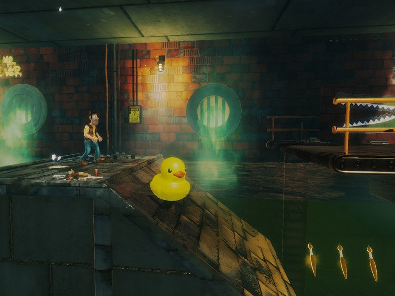 Comme prévu, Tad the Lost Explorer est un jeu de plateforme 2D résolument standard qui, dans l'ensemble, n'innove absolument pas. Tad saute, ramasse des pinceaux lumineux éparpillés un peu partout (qui ne servent à rien d'autre qu'à collecter des objets futiles et sans intérêt), découvre des secrets cachés (un autre objet à collecter qui remplit une mini-encyclopédie assez amusante à compléter), esquive ou anéantit des ennemis, surmonte des obstacles, résout des énigmes environnementales futiles et atteint enfin la "ligne d'arrivée" finale. Si l'on veut tout analyser en détail, Tad the Lost Explorer n'offre pas de barre d'énergie. Cela signifie qu'un seul tir suffira à nous faire mourir et à nous faire redémarrer à partir de l'un des nombreux points de contrôle généreux. Tout compte fait, le titre ne présente pas un niveau de challenge très élevé et nous constatons que, malheureusement, les seules difficultés sont dues à quelques imprécisions techniques, à l'exception de rares passages qui sont vraiment plus difficiles. Tad peut prendre un canard en caoutchouc et le lancer sur ses ennemis. C'est sa seule arme et sa méthode extravagante pour tuer. Souvent, il sera obligatoire d'éliminer un ennemi pour pouvoir continuer. Dans d'autres cas, il suffira de bien sauter pour surmonter l'adversité. Une adversité, à vrai dire, assez familière. Rien dans Tad the Lost Explorer ne surprend par son innovation. Les ennemis eux-mêmes sont assez banals, des araignées qui rampent au plafond aux simples chauves-souris qui voltigent. Cela s'améliore un peu au fil des niveaux et des combats de boss, mais rien de vraiment marquant. Tad dispose lui aussi d'une torche qu'il peut allumer à certains endroits et utiliser pour allumer des torches, des cheminées, etc. Faites attention à l'eau, cependant, ou la flamme s'éteindra et vous devrez revenir en arrière et rallumer la torche.