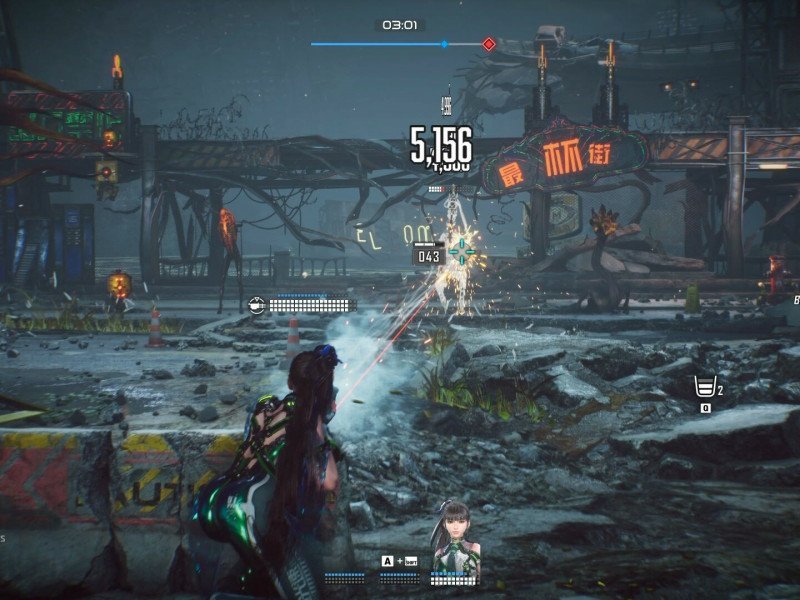 Vous ne combattrez donc pas à l'épée, mais avec une arme à feu, typique du jeu NIKKE, qui incarne le genre du jeu de tir à la troisième personne. Ève se cache derrière des rochers, du béton ou tout autre obstacle pour se protéger. Il faut ensuite viser l'ennemi en face tout en tirant dessus. Chaque rocher possède sa propre barre de vie, qui disparaîtra si l'attaque se poursuit. Il faut donc se déplacer avec précaution pour éviter les dégâts. Une fois les cinq missions terminées, le combat le plus captivant reste bien sûr le combat contre Scarlet elle-même. Ne vous laissez pas tromper par son apparence charmante, car Scarlet est le boss le plus coriace que nous ayons jamais affronté dans ce jeu. Même si nous avons réduit le niveau de difficulté, elle reste très difficile et pénible à vaincre. Il faut moins d'une heure généralement pour conclure ce DLC, ce qui reste un peu court compte tenu du prix de vente (9,99€). Cela étant, après avoir rejoué au jeu, nous attendons avec impatience la suite de Stellar Blade qui est déjà en développement.