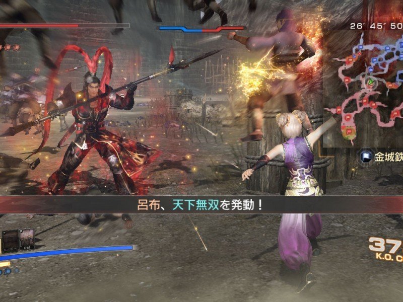Une fois sur le terrain, DW7 Empires redevient un classique Dynasty Warriors. Chaque mission débute par un rapide briefing, et une carte vous détaillera les plans des lieux et la présence des alliés et des ennemis. Comme à l'accoutumée, le Musou, une sorte d'énergie mystique, répond présent. Pour déclencher un coup spécial il faut faire monter la jauge à l'écran. Le Musou Rage lui permet d'affliger encore plus de dégâts, et il sera conseillé de l'utiliser dans le cas d'objectifs plus compliqués. Un nouveau personnage est d'ailleurs présent sur le terrain, en la personne de Xu Shu. Chacun d'entre eux dispose de deux armes (il est possible de passer de l'une à l'autre à tout moment) et de compétences précises, et au cours de la partie vous découvrirez moult objets et même des armes sur le terrain. A ceci s'ajoute des points d'expériences qui augmentent lors des combats. Il ne faudrait pas oublié que derrière ces ballets incessants se cachent une réelle mission. Un objectif raté, game over. Rageant quand on sait que l'action peut durer plusieurs heures. C'est d'ailleurs pour cela que plusieurs sauvegardes sont possibles en cours de partie, une chance.