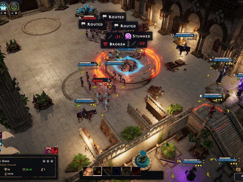 La gestion vous permet de suivre votre parcours à court et à long terme et de progresser vers celui-ci. Par exemple, arrêtez de produire du mana et des points de recherche pour monter de niveau le plus rapidement possible. Vous devrez effectuer une véritable restauration de la tour en construisant des salles : une salle spécifique à votre spécialisation, comme la Glyph Smithy, une série de salles qui produisent des ressources, vous permettent d'embaucher des unités plus avancées et ainsi de suite. Les plans de salle sont déverrouillés en accomplissant certaines quêtes ou en les achetant pour la réputation des villes voisines, qui peuvent être améliorées en accomplissant des quêtes dans la ville respective. En ce qui concerne les batailles, Spellforce : Conquest of Eo propose des combats standard basés sur une grille; avec vos armées commençant d'un côté de l'écran et vos ennemis de l'autre. Frappes de représailles, positions défensives, tout comme dans les bons vieux Heroes of Might and Magic. Malgré la variété des buffs et objets à utiliser en combat et les capacités des personnages, malheureusement les combats seront standardisés et au bout de quelques heures vous comprendrez que chaque combat est une copie du précédent.