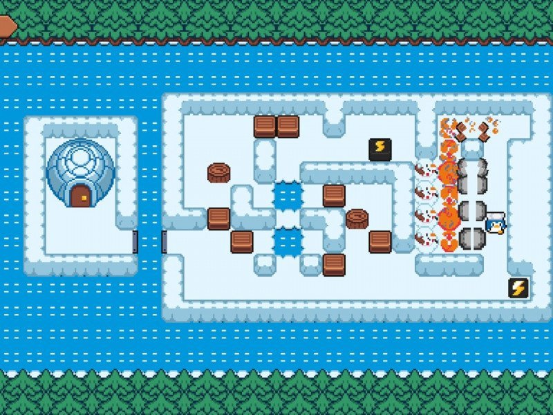 SokoPenguin est un autre jeu Sokoban simple et bon marché, publié par EastAsiaSoft et développé par Vergiu. Vous contrôlez un pingouin sur une grille de tuiles et vous devez atteindre le point de sortie. Pour atteindre l'objectif, il faut cependant pousser avec précision des blocs pour dégager des chemins, construire des ponts et même des cellules d'alimentation pour ouvrir des portes. Il y a aussi un léger aspect Bomberman, car les bombes doivent être poussées pour détruire des rochers dans les étapes ultérieures. Fait unique, le pingouin peut également pousser plusieurs boîtes à la fois, ce qui entre en jeu tout au long de la campagne ; il n'est pas limité à déplacer un bloc à la fois. Mais pour résumer rapidement, oui, c'est un jeu de Sokoban simple. Rien à quoi vous n'ayez déjà joué auparavant et avec un niveau de difficulté très raisonnable. Au lancement du jeu, SokoPenguin intègre cent niveaux au total, mais le joueur n'a besoin de terminer que les soixante-quinze premiers pour débloquer tous les trophées, ce qui prend environ une heure. Aussi simple et direct que soit le gameplay et la présentation, nous n'avons que quelques reproches mineurs à faire. Tout d'abord, la musique se répète et devient exaspérante au niveau vingt. Il n'y a pas non plus de fonction de retour en arrière. Certes, le redémarrage se fait par simple pression sur un bouton, mais il aurait été agréable d'appuyer sur le bouton L1 pour revenir en arrière de quelques étapes au lieu de recommencer à zéro. Pour être honnête, ce jeu ne coûte que cinq dollars et a été créé par une très petite équipe.