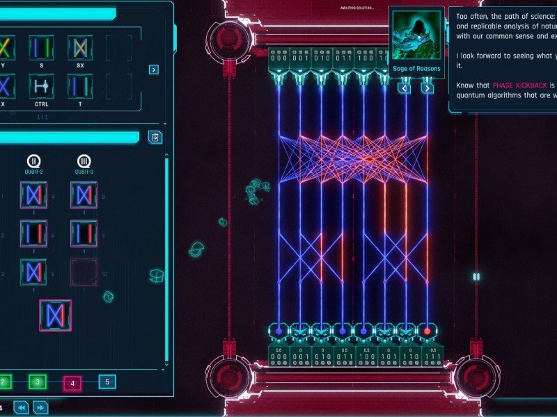 Quarks Interactive a développé un royaume mystique où l’informatique quantique façonne la somme de tout. Un sanctuaire quantique qui abrite un apprenti qui doit étudier auprès de quatre sages qui façonnent son chemin. Il existe des secrets qui peuvent apporter de nouvelles connaissances et la connaissance est un pouvoir. Les murmures cosmiques vous feront grandir de manière exponentielle et illimitée. Quantum Odyssey se présente un jeu éducatif différent de ce qui était proposé dans les années 90. Au lieu de se baser sur la réponse à des questions théoriques, ils ont décidé de passer à des concepts pratiques basés sur des défis. Ces défis seront parfois accompagnés de dialogues qui partageront quelque chose sur le domaine quantique. Tout en résolvant des exercices basés sur des principes réels de l'informatique quantique à l'aide de QuBits. Vous n’avez pas besoin d’un diplôme d’études supérieures pour comprendre les bases de cette aventure, car tout est visuel. Les couleurs sont utilisées pour différencier les différentes problématiques qui composent ce domaine. Le tout dans un simulateur quantique avec plus de 400 tests à réussir. Il s’agit d’algorithmes qui ont une représentation graphique et que nous pouvons modifier avec différentes approches. Ce qui est intéressant dans cette section, c'est qu'elle peut être transférée sur du matériel quantique réel, en enseignant par des pratiques réelles. Cela peut être un peu déroutant au début, mais les mentors que vous rencontrez constituent un excellent tutoriel sur cette science. Chacun d’entre eux a quelque chose d’unique dans la façon dont il transmet sa sagesse sur ce sujet. De manière inattendue, ils font aussi partie d’un aspect de cette science, avec sa perspective sur la responsabilité. Ceux-ci sont accompagnés d'un air mystique qui vous fera continuer à jouer pour démêler plus de curiosités.