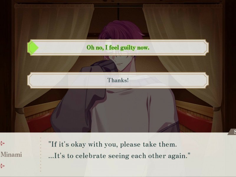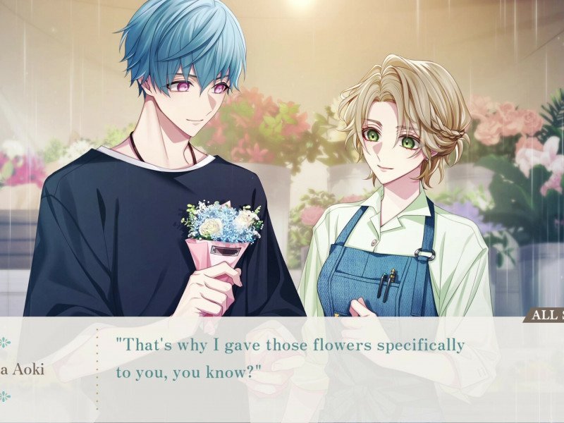 Avec la conception artistique de Yuuya (Cupid Parasite, Café Enchanté, 9 RIP), nous savions déjà que nous allions nous régaler ! Les CG sont absolument époustouflants et ont plusieurs variantes de chacun - et étant donné que les itinéraires étaient beaucoup plus courts que la moyenne, ils n'ont pas lésiné sur les moyens non plus ! L'attention portée aux détails, en particulier la mise en valeur des fleurs, était absolument merveilleuse. L'art de fond était également magnifique, avec divers lieux, avec des changements de temps, et même les sprites avaient la même esthétique. Les LI avaient tous plusieurs tenues également, ce qui est l'une de mes caractéristiques préférées dans les otome, donc des points bonus pour ce détail ! En plus des illustrations accrocheuses, le jeu était entièrement doublée (à l'exception des héroïnes) par un casting de voix bien connu qui a ajouté une couche supplémentaire de réalisme à l'expérience. Dans l’ensemble, les itinéraires sont assez mignons, et les quatre protagonistes ayant des personnalités différentes sont quelque chose qui aide vraiment à donner cette individualité à chacun d’eux. Cependant, il y a gros mais : La version japonaise, lors de sa sortie en 2024, proposait une option permettant de modifier le texte en anglais, ce qui a conduit de nombreuses personnes à importer une copie ou à l'acheter directement sur l'eShop japonais. Cependant, il n'a pas fallu longtemps pour découvrir que la traduction anglaise était clairement réalisée par l'IA.