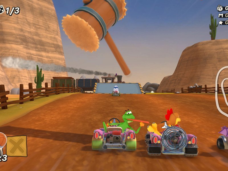 Le poulet fou Moorhuhn est une figure qui existe depuis 1999, à travers son premier jeu basé sur des œuvres comme Duck Hunt. Le personnage a fait des apparitions sur diverses plateformes telles que Windows, PlayStation 2 et même Nintendo Wii, et avait disparu depuis il y a près de quinze ans. Moorhuhn Kart 4 affiche très clairement l'une de ses plus grandes inspirations : Mario Kart. Il est inévitable que tout jeu de ce style ait été réalisé sans prendre quelque chose ici et là du spin-off de la course automobile la plus célèbre du monde, alors qu'il y a beaucoup de place pour l'innovation dans ce média. Le développeur allemand ne met pas autant l'accent sur la présentation et l'introduction du joueur à son univers. Tout va droit au but, dans un style arcade. Nous entrons simplement dans le menu de démarrage et recevons les options de course. Si cela dénote une certaine agilité pour nous mettre immédiatement sur la piste, cela présente aussi le danger de ressembler à un produit qui manque de polissage. Même s'il s'agit d'un jeu indépendant à petit budget, il est possible d'être créatif et d'attirer l'attention de ceux qui achètent le produit. Le jeu ne prend pas la peine d'explorer les personnages, les pistes ou toute sorte d'histoire. Le sentiment de jouer quelque chose juste pour le plaisir de jouer est prédominant. Le plus passionnant est le mode Championnat, qui permet de remporter de nouveaux championnats en gagnant le précédent et même, étonnamment, de recommencer des courses de manière isolée afin de ne pas perdre le championnat ou les points acquis (la plupart des jeux de course ne le permettent pas). Le gameplay du jeu est basé sur les jeux de kart classiques. Les joueurs choisissent un personnage, montent dans un kart personnalisable et s'affrontent sur un total de douze pistes, des sentiers de la jungle à la prairie de Sven Bømwøllen , et offrent de nombreux défis et raccourcis cachés mais tout de même un choix restreint par rapport à la concurrence.