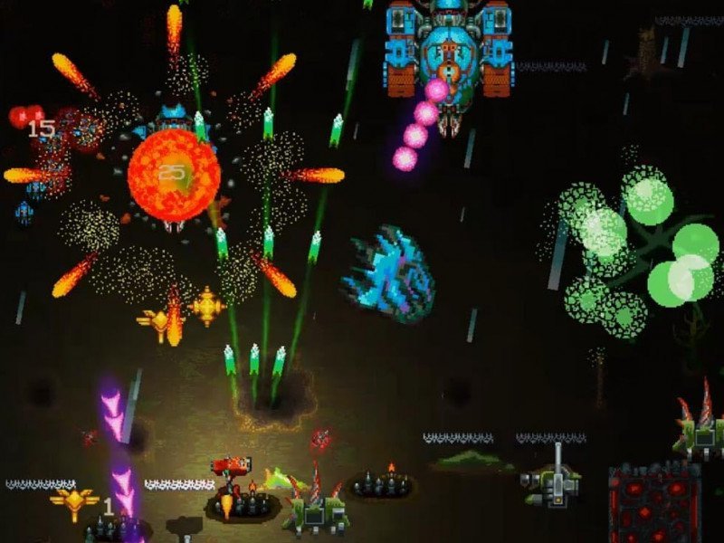 Le jeu se déroule comme n'importe quel autre jeu de tir à défilement, avec une course verticale ascendante et des bordures de chaque côté de l'aire de jeu. Ces bordures servent à afficher des informations clés telles que le score total, le nombre de morts, les combos et le nombre d'attaques spéciales de Valkyrie à utiliser. Le jeu offre un rythme stimulant et rapide, pour une expérience globalement amusante. Les commandes fonctionnent bien, avec une configuration simple permettant des temps de réaction ultra-rapides pour survivre à chaque vague d'ennemis. Le jeu peut parfois être impitoyable, alors restez concentré. 1917 propose également de nombreux contenus à collectionner et à débloquer en jouant, comme des améliorations d'armes, des combos de score et les indispensables orbes de bouclier. Ces éléments essentiels sont essentiels pour terminer un niveau, car le déluge de tirs ennemis était parfois imparable. Au fil de votre progression dans les dix niveaux de l'histoire, vous pourrez également débloquer de nouveaux avions améliorés, chacun doté de capacités pratiques. 1917 – The Alien Invasion DX possède des graphismes dignes de ceux de la Super Nintendo, vous offrant ainsi un jeu de tir pixelisé, explosif et gore. Vous remarquerez que, malgré son aspect vieillot, le jeu propose un nombre suffisant d'ennemis différents, des effets spéciaux soignés et, de temps en temps, des scènes sanglantes. Globalement, ce jeu aurait probablement fait exploser votre Super Nintendo avec tout ce qui se passe en permanence, mais ce look rétro lui va comme un gant. Nous pensons que si les graphismes avaient été modernisés, le jeu aurait perdu de son intérêt, surtout compte tenu du fait qu'il se déroule dans une autre époque de 1917 que celle que nous connaissons aujourd'hui. Le jeu propose une bande-son plutôt entraînante, proche des thèmes d'un film de guerre, quoique légèrement modifiée. Vous pourrez profiter d'une musique différente à chaque niveau, tout en profitant des bruits d'explosions, de vos tirs de canon incessants, de ceux de vos ennemis et d'un annonceur démoniaque qui prononce parfois quelques mots. Ce dernier est un véritable générateur d'ambiance, et nous regrettons qu'il ne soit pas utilisé plus souvent.