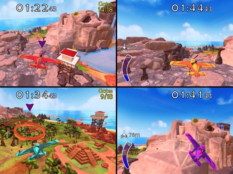 En mode solo, vous choisissez un pilote (parmi huit disponibles) et les parcours sont divisés en ensembles de cinq niveaux à la difficulté croissante qui sont débloqués en accumulant des médailles d’or au niveau individuel. En tout, nous retrouvons une cinquantaine de courses à effectuer, ainsi que des parcours à débloquer pour explorer l'île. En mode multijoueur, chaque joueur choisit son pilote. Les parcours sont répartis en trois étapes de difficulté différentes et chaque stage comprend un type d'avion et un type de défi à accomplir. Vous pouvez ainsi participer à un court tournoi d'un à trois courses ou à un tournoi plus complet à dix niveaux.