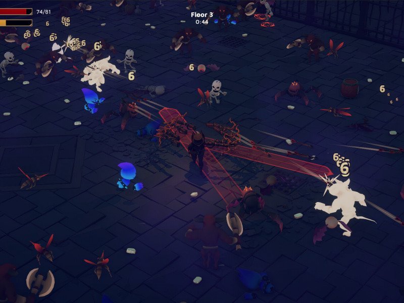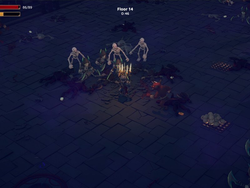 Graphiquement , God of Weapons fait son travail, offrant des zones nettes et bien définies, sans défaut majeur. Malheureusement, l'anonymat règne en maître, des personnages incarnés aux ennemis mentionnés précédemment. Les zones du jeu sont également extrêmement répétitives, anonymes et dénudées. En bref, stylistiquement, God of Weapons est assez oubliable. Les armes, en revanche, s'améliorent ; bien que globalement standard, elles offrent des animations agréables, et le plaisir de se voir déambuler avec des dizaines d'épées flottantes prêtes à fender l'air est satisfaisant. Le système sonore remplit son rôle d'élément d'accompagnement, sans être ni louable ni répréhensible, et remplit sa fonction sans être redondant ni gênant. Les effets sonores sont bons, mais côté technique, indéniablement assez brut, nous avons rencontré quelques épisodes avec des ralentissements notables dus au grand nombre d'ennemis animés simultanément à l'écran. Nous avons également noté quelques chevauchements excessifs d'ennemis, mais rien de grave. La présence du français est bienvenue, rehaussant une interface plutôt spartiate. Chaque partie comporte vingt étages où le défi est le même : survivre jusqu'à la fin du temps imparti . Chaque round dure de plus en plus longtemps, de vingt secondes à plus d'une minute. Cela peut paraître court, mais nous vous assurons qu'après quelques secondes, l'arène se remplira d'ennemis prêts à vous faire du mal… et à ce propos, sachez que le début est plutôt facile, mais la situation est vouée à empirer. Deux astuces pour survivre : créer une configuration solide en enchaînant les effets des armes et des accessoires, et utiliser judicieusement les barils.