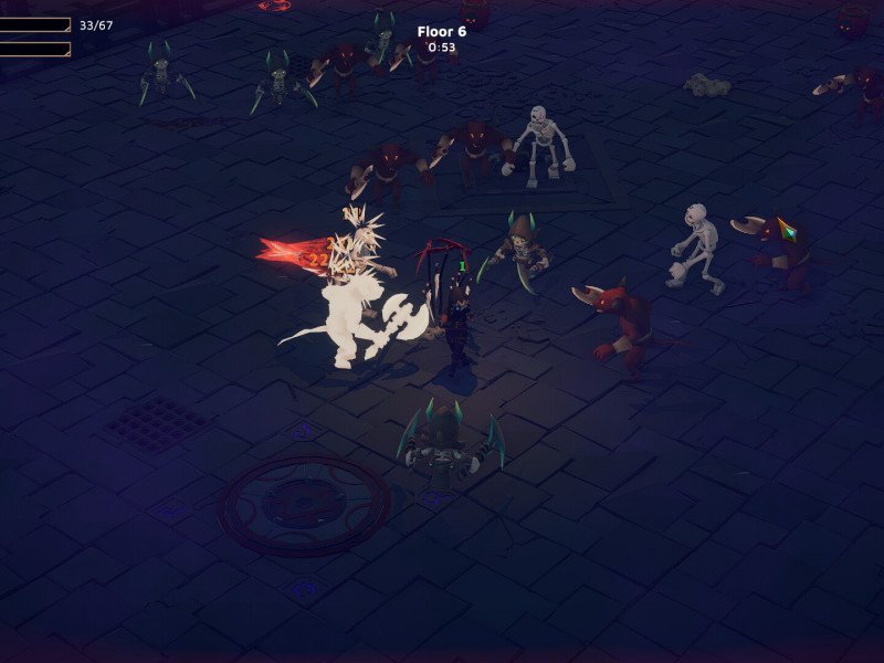 Développé par Archmage Games Studios, God of Weapons est un jeu d'action roguelike 3D à la troisième personne et à caméra fixe proposant des combats automatisés en arène contre des hordes d'ennemis procéduraux. Les ténèbres se sont abattues sur le monde, la dernière lumière a été volée, et le chaos et la morosité règnent partout. Des hordes d'ennemis infestent la création, et le peuple est désormais privé de tout espoir. C'est le début flou et confus de God of Weapons, où une poignée de combattants anonymes, identifiables uniquement par leur classe (qui est d'ailleurs résolument standard), doivent affronter des avalanches d'ennemis dans une certaine tour de Zhor . Malheureusement, l' histoire de God of Weapons s'arrête là, ne laissant aucune place à l'histoire, aux documents descriptifs ni aux dialogues. Nos héros sont tous totalement silencieux, et il est impossible d'échanger des mots, même avec les ennemis. Pire encore, même les lieux sont assez fades et vite répétitifs. En effet, le titre se concentre uniquement sur le gameplay, sacrifiant toute forme de narration. Même les ennemis manquent de caractérisation, apparaissant comme incroyablement standard et oubliables. L'absence de narration est regrettable, mais God of Weapons a bien d'autres atouts dans son sac. Il s'agit d'un jeu d'action 3D à la troisième personne avec une vue isométrique fixe (et donc non ajustable manuellement) proposant des combats de hordes chronométrés dans des zones fermées et bien définies, particulièrement étroites, et aux règles roguelike . Enfin, le système de combat est automatique : il suffit de courir et d'esquiver, et les armes font le reste d'elles-mêmes, agissant de manière autonome.