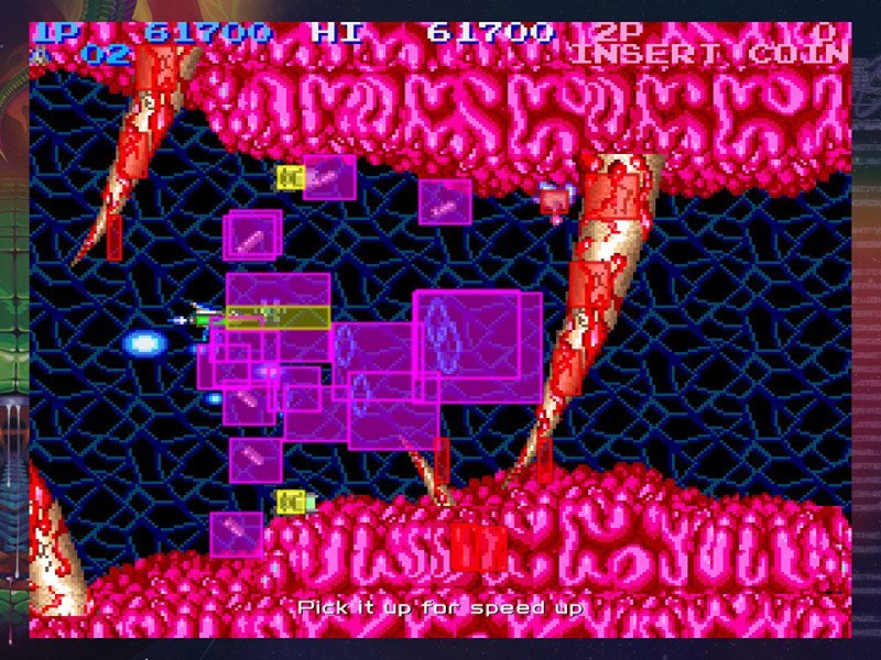 Salamander , sorti en 1986 comme spin-off de Gradius , propose un système de bonus plus simple et introduit une nouvelle menace : l'escadron Salamander, dirigé par les forces bactériennes. Lorsque la planète aquatique Latis est envahie, même le prince, pilote du vaisseau Lord British, ne peut arrêter l'avancée ennemie. Blessé, il appelle Gradius à l'aide. Ainsi, le légendaire Vic Viper s'allie à Lord British pour affronter les ténèbres qui menacent de consumer l'univers. Salamander combine des niveaux à défilement horizontal et vertical, élargissant l'univers de Gradius de manière épique. Le spin-off de Gradius a deux versions différentes, il y a Salamander – Version japonaise (sortie au Japon, cette version de la série Salamander présente quelques différences frappantes par rapport à la série Gradius, telles que la coopération à deux joueurs et la possibilité de continuer exactement là où le joueur s'est arrêté après avoir perdu un navire) et Life Force – Version américaine (voici la version internationale de Salamander, sortie hors du Japon sous le nouveau titre Life Force. Outre le nouveau nom, cette version propose des voix supplémentaires et quelques modifications graphiques. Pour le reste, elle est quasiment identique à la version japonaise de Salamander, conservant l'essence de l'univers de Gradius). Dans Life Force , suite directe de Salamander , la paix de Gradius est de courte durée. Deux ans après la guerre contre Bacterian, une nouvelle menace émerge : la mystérieuse Force Vitale, un superorganisme à la croissance incontrôlable, dévorant tout sur son passage. Gradius risquant d'être avalé par cette entité vivante, la Vic Viper est de nouveau appelée au combat. Life Force conserve l'essence de Gradius, mais avec un ton plus biologique et viscéral, plongeant les joueurs au cœur d'un organisme vivant en quête désespérée de survie. Bien qu'il n'existe qu'une seule version de Life Force dans la collection, elle est jouable en mode original, facile et invincible. Un mode entraînement vous permet de vous entraîner tout en ajustant les paramètres de jeu, la galerie de replays, ainsi qu'un manuel numérique très complet et un classement en ligne.