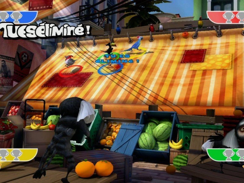 Blu, un perroquet bleu d’une espèce très rare, quitte sa petite ville sous la neige et le confort de sa cage pour s’aventurer au cœur des merveilles exotiques de Rio de Janeiro. Sachant qu’il n’a jamais appris à voler, l’aventure grandiose qui l’attend au Brésil va lui faire perdre quelques plumes ! Heureusement, ses nouveaux amis hauts en couleurs sont prêts à tout réveiller le héros qui est en lui, et lui faire découvrir tout le sens de l’expression « prendre son envol ». Pour son arrivée sur consoles, Rio n'a pas choisi la voie du classique jeu d'action/plateformes, mais celui du party game. Aussi, nous retrouvons une quarantaine de mini-jeux jouables jusqu'à quatre, où le déroulement est pour le moins linéaire et le challenge quasi-inexistant. Certes, le jeu est avant tout prévu pour le jeune public, mais tout de même ! En outre, les épreuves proposées manquent singulièrement de panaches, aucun retournement de situation n'est à craindre, au contraire d'un Mario Party par exemple. On trace sa route sans se retourner, et on termine assez rapidement le mode Histoire, trop sans doute d'ailleurs. Quant au mode Fête, il ne permet pas grande fantaisie, si ce n'est personnaliser sa partie. La Danse du Carnaval offre pour sa part, le luxe de récupérer davantage de marmousets que ses concurrents, histoire d'assurer une meilleure chorégraphie dans les intermèdes. Enfin, la Roue de Carnaval est une gigantesque roue, où le hasard vous lancera un mini-jeu aléatoire, tandis que le Gala de Guirlandes transforme les points en guirlandes qu'il faut lancer sur des cibles à l'écran.