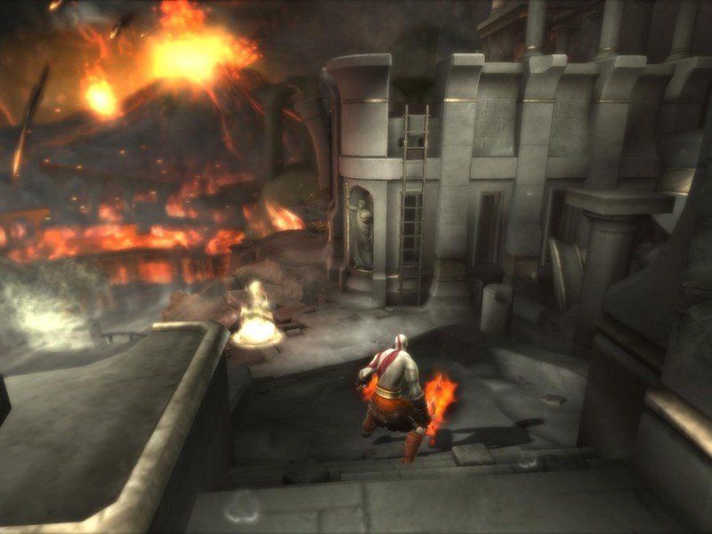A l'instar des récents épisodes de Prince of Persia réalisés par Ubi Soft, Kratos peut se déplacer dans les hauteurs et se suspendre à différentes parois. Tel un acrobate, on avancera prudemment dans des chemins étroits, quand tout à coup une plateforme s'effondrera obligeant à emprunter un chemin risqué. Le jeu est quand même assez tolérant. Si vous tombez, ce ne sera pas un Game Over, mais juste une perte de quelques points de vie.