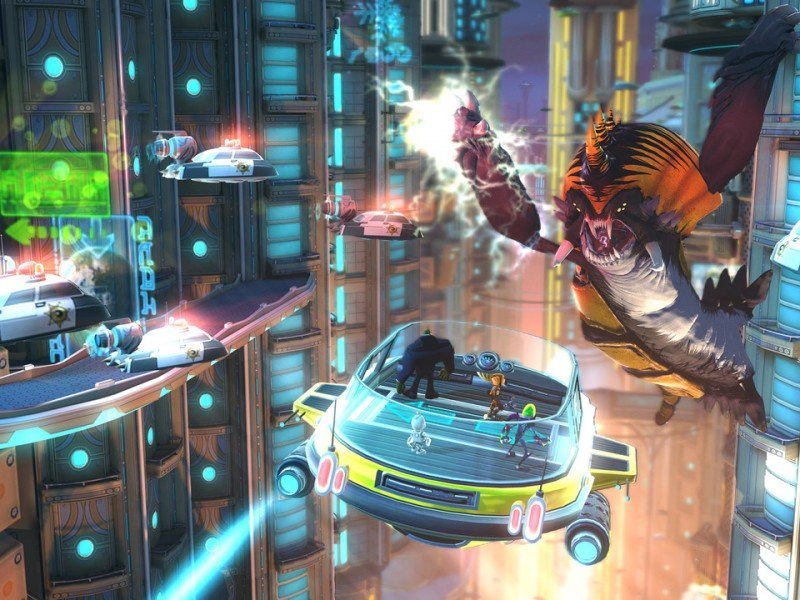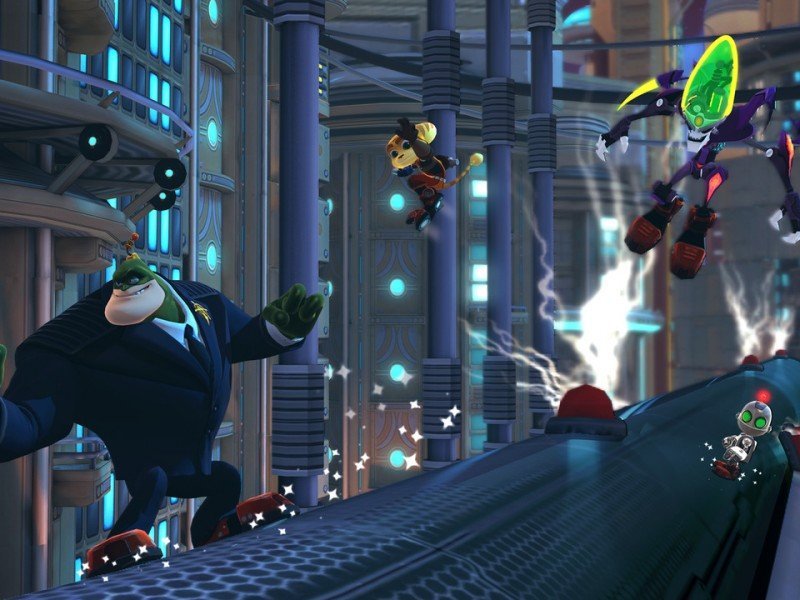 L'atmosphère sonore est bien réalisée, et les voix françaises ne manquent pas d'humour, une des particularités de la série. Car en effet, Ratchet & Clank ressemble beaucoup à un dessin animé, présentant des séquences sans temps mort, des personnages haut en couleur et des dialogues savoureux. Il faudra une dizaine d'heures pour boucler l'aventure, une performance assez bonne dans l'ensemble, surtout que le titre pourra être parcouru plusieurs fois. A noter qu'un mode en ligne est également présent et qu'il utilise un PSN Pass.